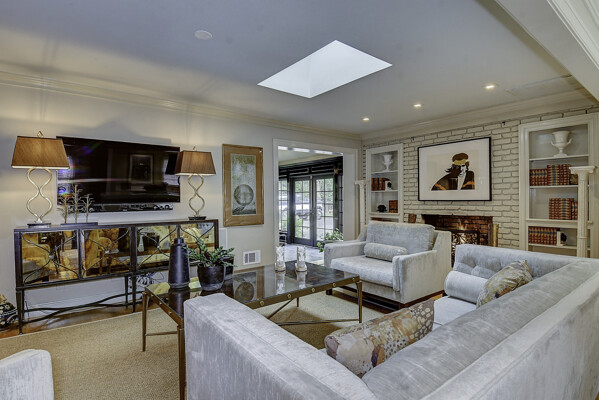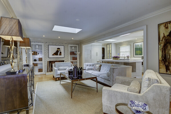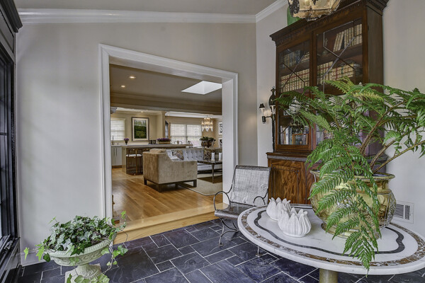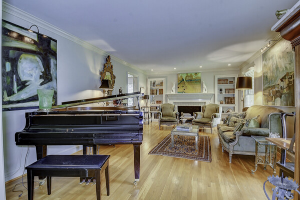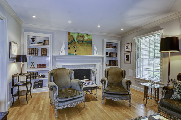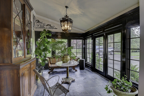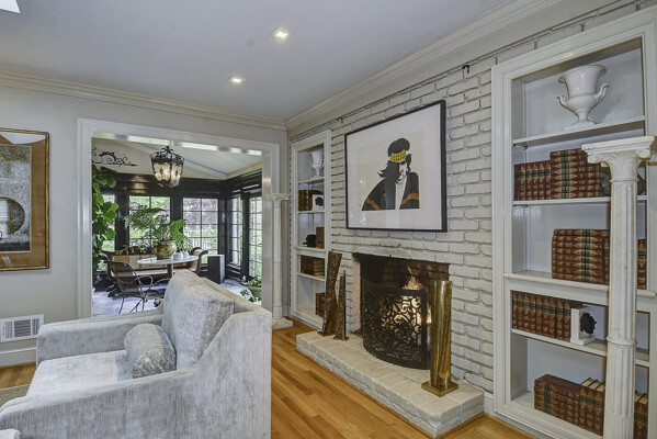 The first floor features a classic formal living room with built-in bookshelves and fireplace, tiled sunroom, and four bedrooms including en-suite with fully-tiled shower.